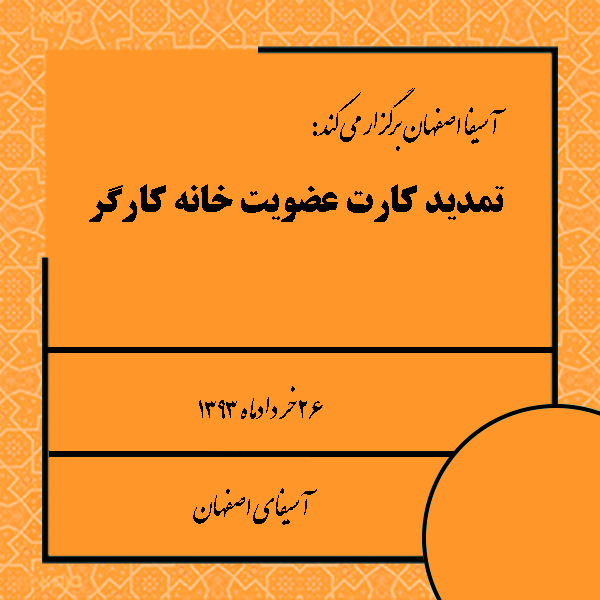 خرداد ۲۵, ۱۳۹۳ | اطلاعیه ها به اطلاع آن دسته از اعضای آسیفا اصفهان که فبلا عضو خانه کارگر بوده اند می رساند، چنانچه قصد تمدید آن کارت […]